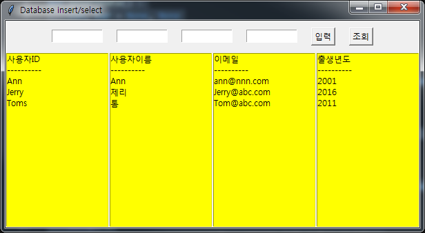 Python GUI를 이용한 DB 입력/조회 프로그램