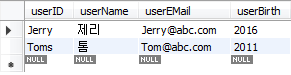 입력 후에는 DB에 아래와 같은 명령을 내리면, 추가된 Jerry를 확인할 수 있다.