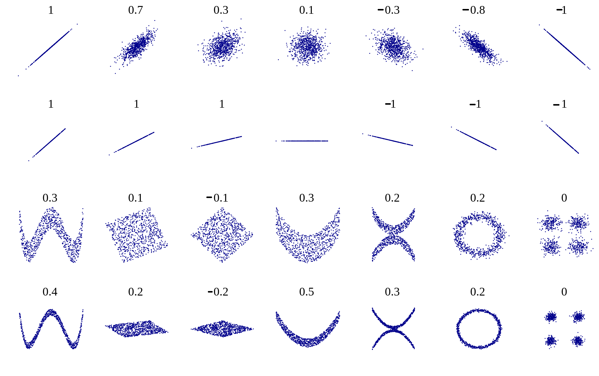 상관계수는 두 개의 변수 사이의 직선적인 관련 정도를 측정하기 위한 통계량이라고 볼 수 있다. 즉, 산점도에서 나타난 선형 관계의 정도를 다시 말해서, 직선과 점들이 어느 정도 흩어져 있느냐에 따라 선형 관계에 대한 강도를 측정하는 수치적 측도가 상관 계수다.