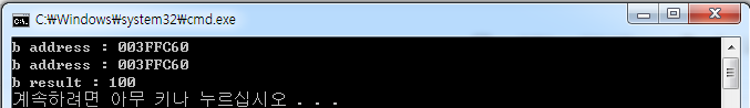 b의 주소가 다를 뿐 아니라 결과 값도 변경되지 않았다. 이것은 변수를 참조자(&)를 사용했기 때문이다.