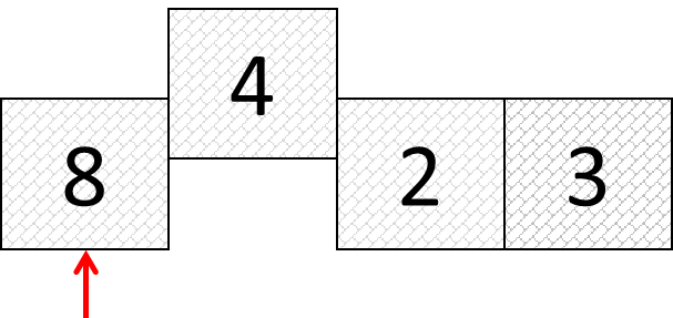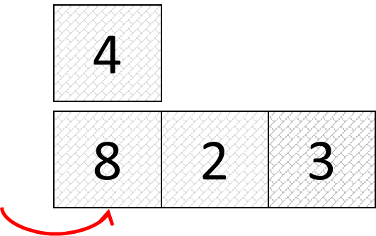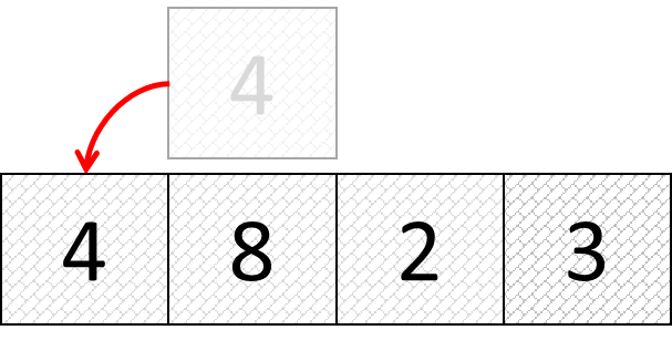 1. 첫 번째 패스스루에서 임시로 인덱스 1(두 번째 셀)의 값을 삭제하고 이 값을 임시 변수에 저장한다. 인덱스 1에 값이 없으므로 공백이 생긴다.