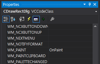WM_PAINT 이벤트를 등록하면 OnPaint()라는 함수와 연결되는데, 클래스 뷰의 속성에서 확인할 수 있다.