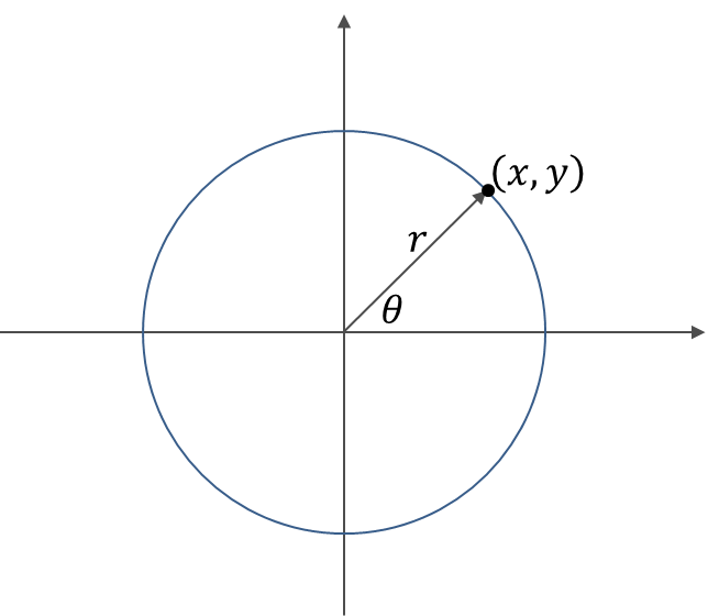점 (x, y)의 위치는 반지름과 삼각함수를 이용하여 구할 수 있다.