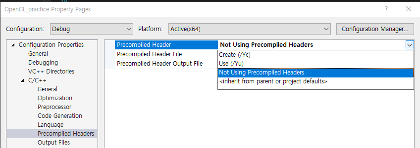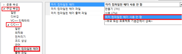 에러 C1853이 발생되는데, 여기서 멘붕이 살짝 올 수 있지만, 설정을 변경해 준다.