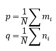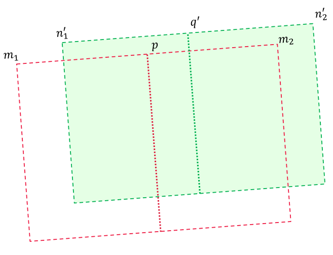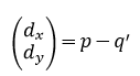 두 마크를 잇는 직선의 중심을 각각 p, q라고 하면 다음과 같이 정의할 수 있다.