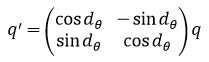 회전된 중심 q'과 기준 중심 p의 차이를 이용하여 이송량 dx, dy를 구할 수 있다.