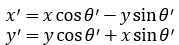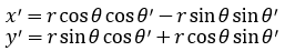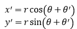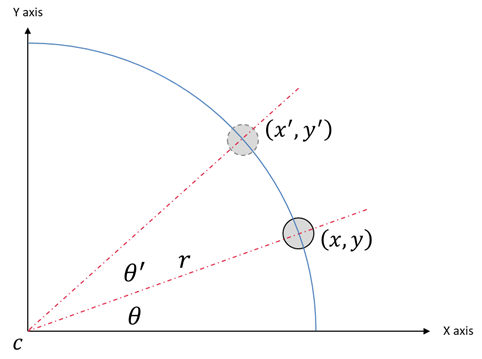 (x', y')는 중심 c를 기준으로 r만큼 떨어진(x, y)를 θ만큼 회전시킨 좌표다. 각 좌표는 삼각함수를 이용하여 표현할 수 있다.