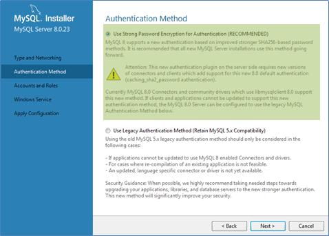 [Authentication Method]에서 기본 값인 ‘Use Strong Password ~~’가 선택된 상태에서 <Next>를 클릭한다.