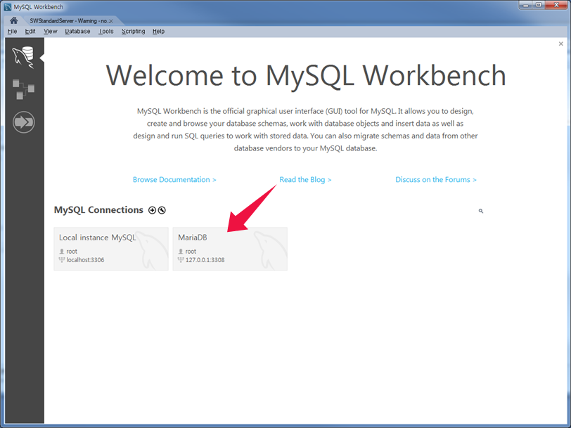 1. 새롭게 추가한 연결이 추가 되었다. 해당 연결을 클릭하면 접속할 수 있다.