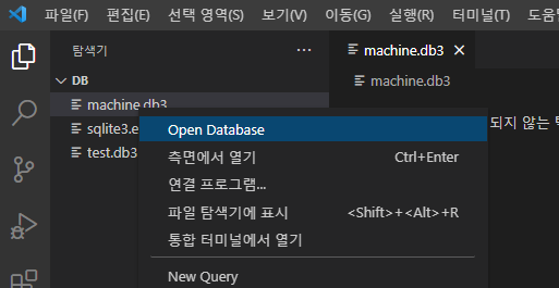 탐색기에서 DB 파일이 있는 폴더를 지정한다. 탐색기에 DB 파일이 나타나면 우클릭해서 Open Database를 실행하자.