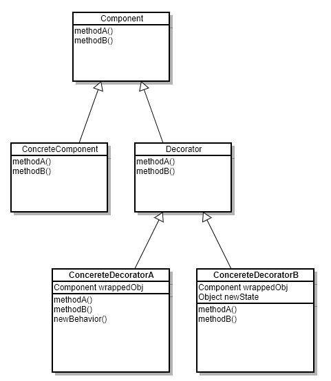 OCP(Open-Closed Principle) 기존 코드는 건드리지 않은 채로 확장을 통해서 새로운 행동을 간단하게 추가할 수 있도록 한다. 이것을 달성하면 새로운 기능을 추가하는 데 있어서 매우 유연해서 급변하는 주변 환경에 잘 적응할 수 있으면서도 강하고 튼튼한 디자인을 만들 수 있다. 코드에서 확장해야 할 부분을 선택할 때는 세심한 주의를 기울여야 한다. 무조건 OCP를 적용하는 것은 시간 낭비가 될 수도 있고, 괜히 쓸 데 없는 일을 하는 것일 수도 있다. 결과적으로 불필요하게 복잡하고 이해하기 힘든 코드만 만들게 되는 부작용이 있을 수도 있으니 주의해야 한다. 데코레이터 패턴(Decorator Pattern)에서는 객체에 추가적인 요건을 동적으로 첨가한다. 데코레이터는 서브클래스를 만드는 것을..